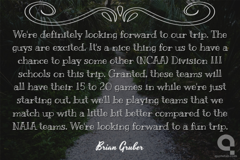 We're definitely looking forward to our trip. The guys are excited. It's a nice thing for us to have a chance to play some other (NCAA) Division III schools on this trip. Granted, these teams will all have their 15 to 20 games in while we're just starting out, but we'll be playing teams that we match up with a little bit better compared to the NAIA teams. We're looking forward to a fun trip.