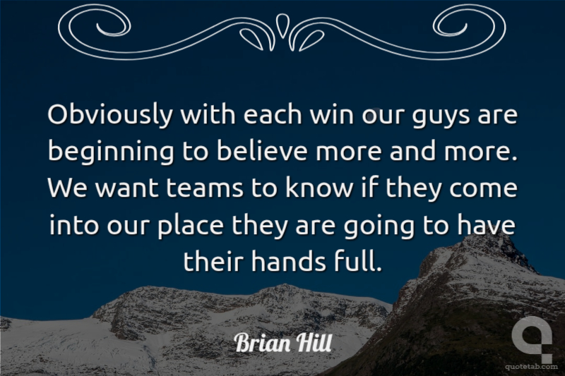 Obviously with each win our guys are beginning to believe more and more. We want teams to know if they come into our place they are going to have their hands full.