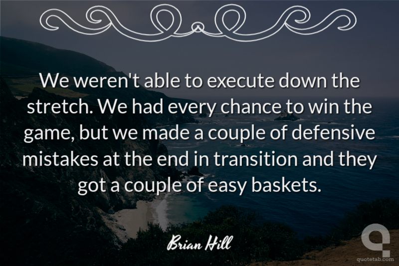 We weren't able to execute down the stretch. We had every chance to win the game, but we made a couple of defensive mistakes at the end in transition and they got a couple of easy baskets.