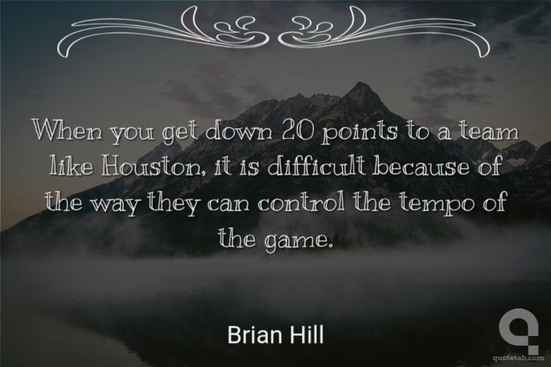 When you get down 20 points to a team like Houston, it is difficult because of the way they can control the tempo of the game.