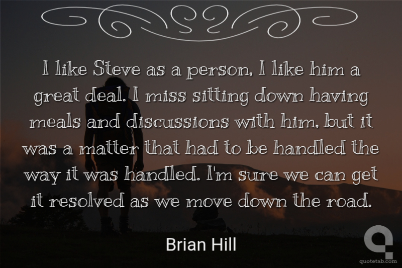I like Steve as a person, I like him a great deal. I miss sitting down having meals and discussions with him, but it was a matter that had to be handled the way it was handled. I'm sure we can get it resolved as we move down the road.