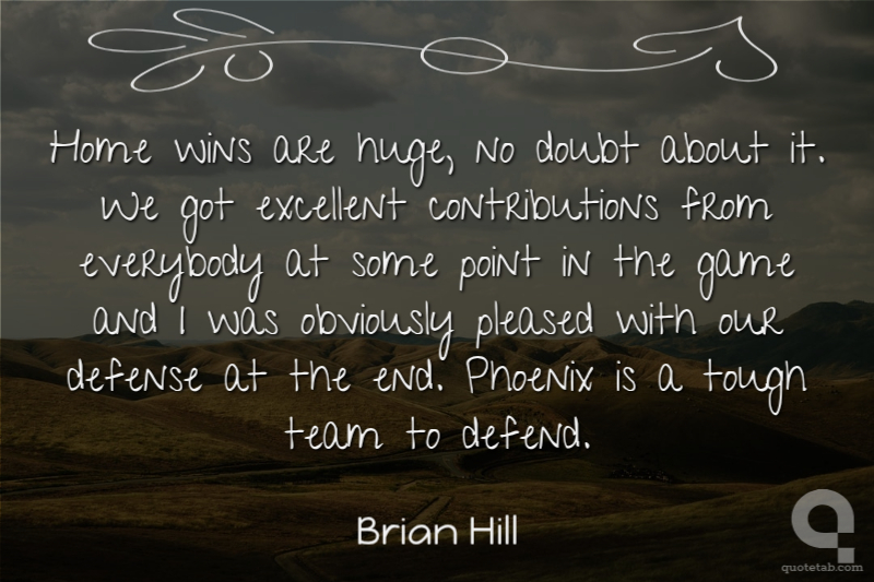 Home wins are huge, no doubt about it. We got excellent contributions from everybody at some point in the game and I was obviously pleased with our defense at the end. Phoenix is a tough team to defend.