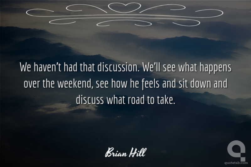 We haven't had that discussion. We'll see what happens over the weekend, see how he feels and sit down and discuss what road to take.