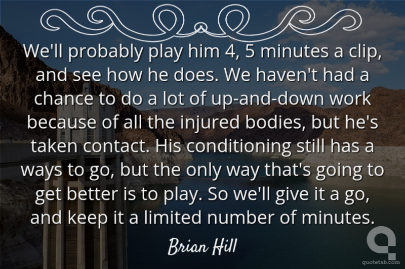 We'll probably play him 4, 5 minutes a clip, and see how he does. We haven't had a chance to do a lot of up-and-down work because of all the injured bodies, but he's taken contact. His conditioning still has a ways to go, but the only way that's going to get better is to play. So we'll give it a go, and keep it a limited number of minutes.