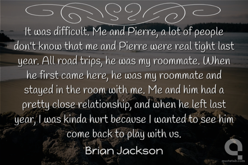 It was difficult. Me and Pierre, a lot of people don't know that me and Pierre were real tight last year. All road trips, he was my roommate. When he first came here, he was my roommate and stayed in the room with me. Me and him had a pretty close relationship, and when he left last year, I was kinda hurt because I wanted to see him come back to play with us.