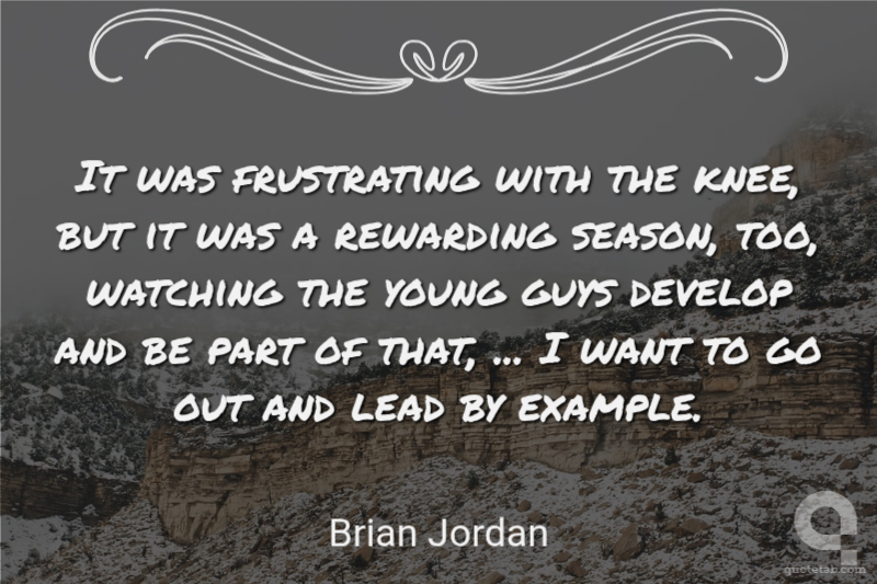It was frustrating with the knee, but it was a rewarding season, too, watching the young guys develop and be part of that, ... I want to go out and lead by example.