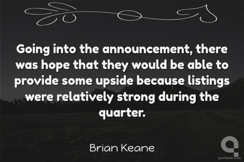 Going into the announcement, there was hope that they would be able to provide some upside because listings were relatively strong during the quarter.