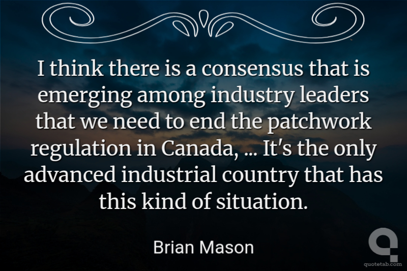 I think there is a consensus that is emerging among industry leaders that we need to end the patchwork regulation in Canada, ... It's the only advanced industrial country that has this kind of situation.