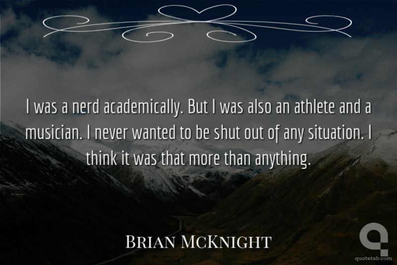 I was a nerd academically. But I was also an athlete and a musician. I never wanted to be shut out of any situation. I think it was that more than anything.