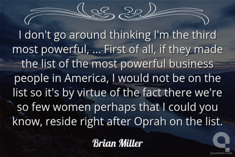 I don't go around thinking I'm the third most powerful, ... First of all, if they made the list of the most powerful business people in America, I would not be on the list so it's by virtue of the fact there we're so few women perhaps that I could you know, reside right after Oprah on the list.