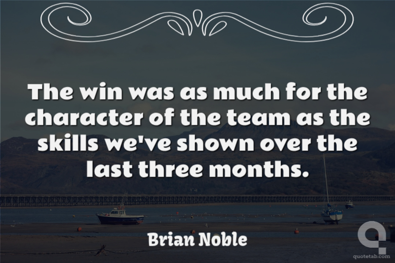 The win was as much for the character of the team as the skills we've shown over the last three months.
