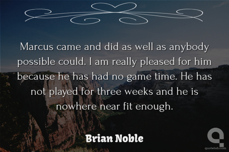 Marcus came and did as well as anybody possible could. I am really pleased for him because he has had no game time. He has not played for three weeks and he is nowhere near fit enough.