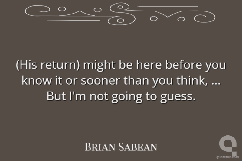 (His return) might be here before you know it or sooner than you think, ... But I'm not going to guess.