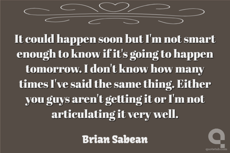 It could happen soon but I'm not smart enough to know if it's going to happen tomorrow. I don't know how many times I've said the same thing. Either you guys aren't getting it or I'm not articulating it very well.
