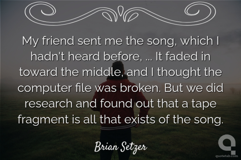 My friend sent me the song, which I hadn't heard before, ... It faded in toward the middle, and I thought the computer file was broken. But we did research and found out that a tape fragment is all that exists of the song.