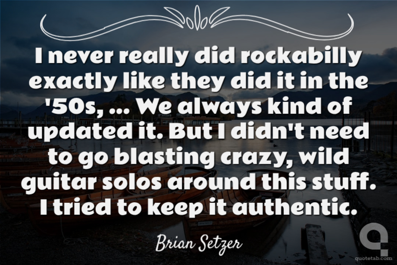 I never really did rockabilly exactly like they did it in the '50s, ... We always kind of updated it. But I didn't need to go blasting crazy, wild guitar solos around this stuff. I tried to keep it authentic.