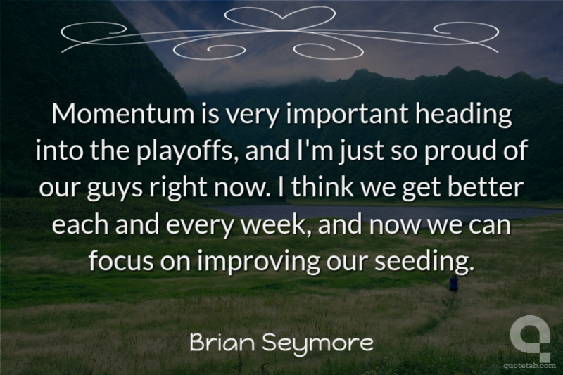 Momentum is very important heading into the playoffs, and I'm just so proud of our guys right now. I think we get better each and every week, and now we can focus on improving our seeding.