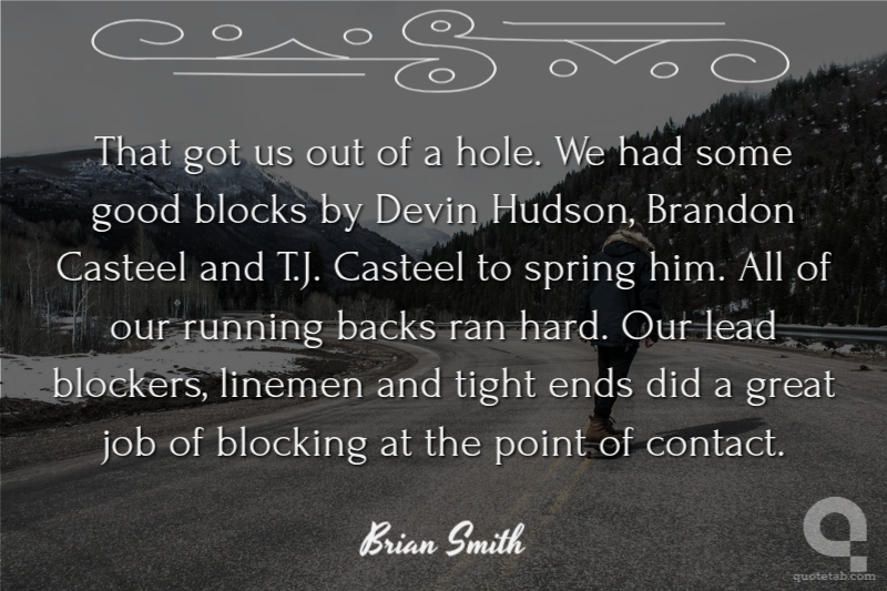That got us out of a hole. We had some good blocks by Devin Hudson, Brandon Casteel and T.J. Casteel to spring him. All of our running backs ran hard. Our lead blockers, linemen and tight ends did a great job of blocking at the point of contact.