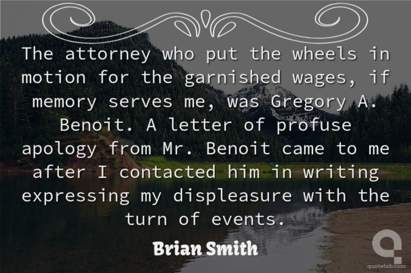 The attorney who put the wheels in motion for the garnished wages, if memory serves me, was Gregory A. Benoit. A letter of profuse apology from Mr. Benoit came to me after I contacted him in writing expressing my displeasure with the turn of events.