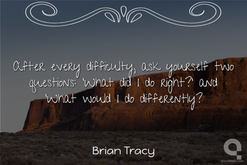 After every difficulty, ask yourself two questions: 'What did I do right?' and 'What would I do differently?