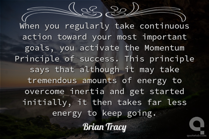 When you regularly take continuous action toward your most important goals, you activate the Momentum Principle of success. This principle says that although it may take tremendous amounts of energy to overcome inertia and get started initially, it then takes far less energy to keep going.