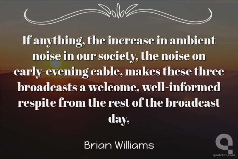 If anything, the increase in ambient noise in our society, the noise on early-evening cable, makes these three broadcasts a welcome, well-informed respite from the rest of the broadcast day,