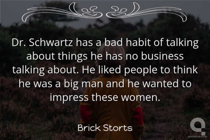 Dr. Schwartz has a bad habit of talking about things he has no business talking about. He liked people to think he was a big man and he wanted to impress these women.