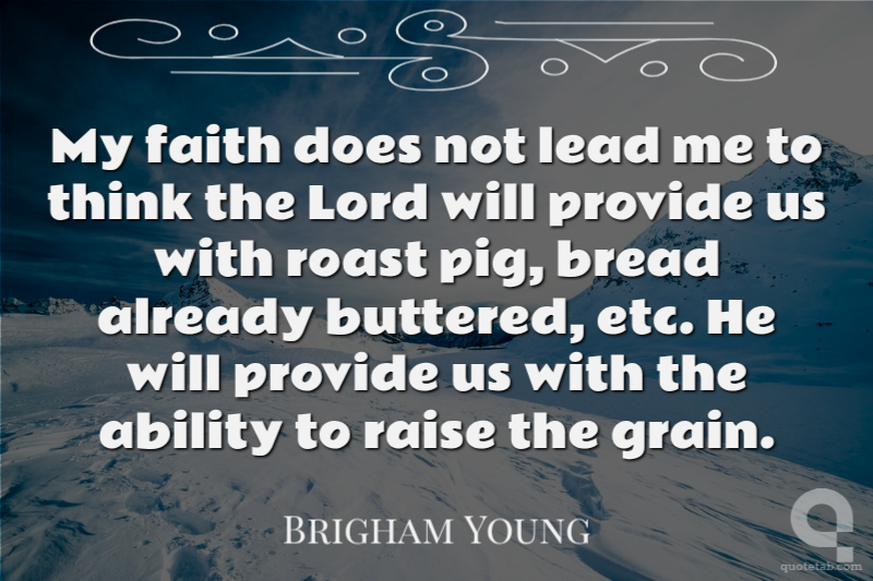 My faith does not lead me to think the Lord will provide us with roast pig, bread already buttered, etc. He will provide us with the ability to raise the grain.
