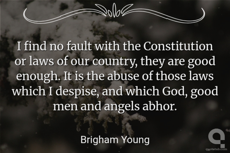 I find no fault with the Constitution or laws of our country, they are good enough. It is the abuse of those laws which I despise, and which God, good men and angels abhor.