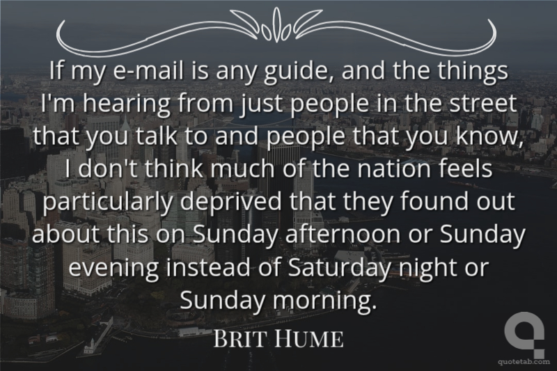 If my e-mail is any guide, and the things I'm hearing from just people in the street that you talk to and people that you know, I don't think much of the nation feels particularly deprived that they found out about this on Sunday afternoon or Sunday evening instead of Saturday night or Sunday morning.