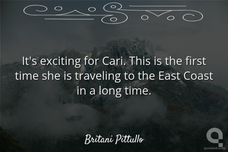 It's exciting for Cari. This is the first time she is traveling to the East Coast in a long time.