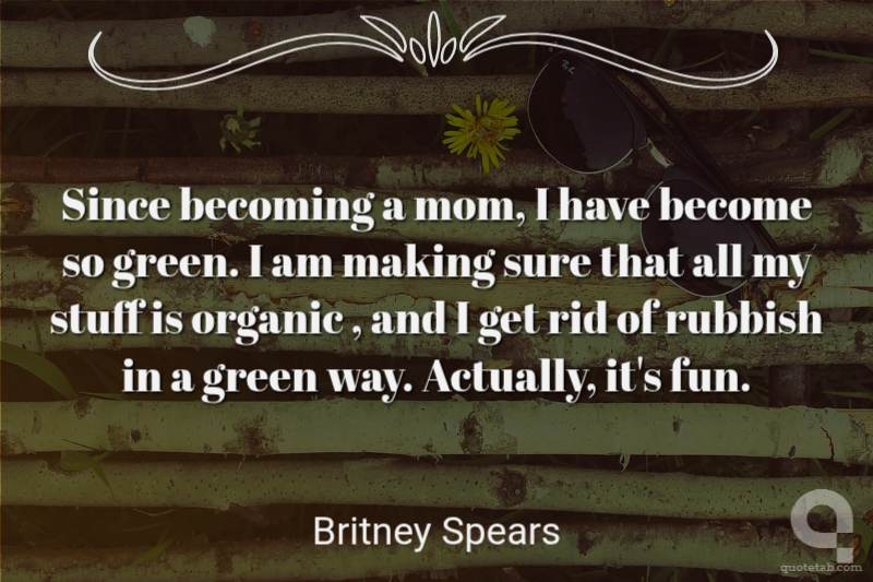 Since becoming a mom, I have become so green. I am making sure that all my stuff is organic , and I get rid of rubbish in a green way. Actually, it's fun.