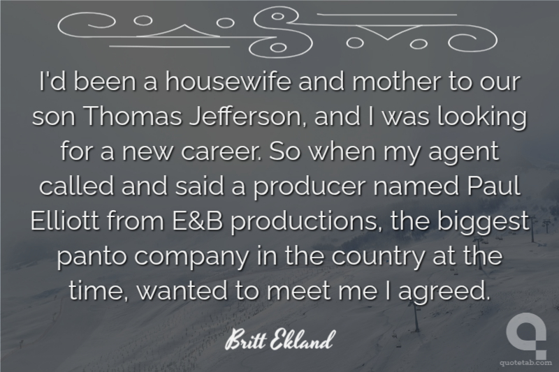 I'd been a housewife and mother to our son Thomas Jefferson, and I was looking for a new career. So when my agent called and said a producer named Paul Elliott from E&B productions, the biggest panto company in the country at the time, wanted to meet me I agreed.