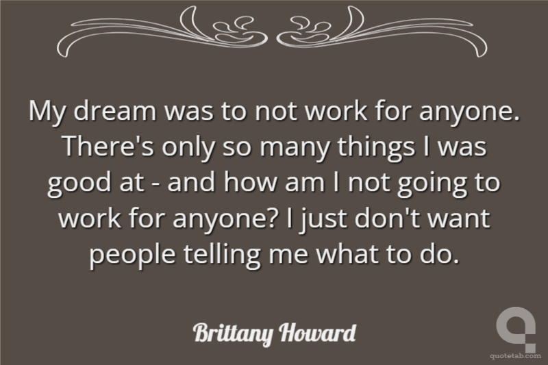 My dream was to not work for anyone. There's only so many things I was good at - and how am I not going to work for anyone? I just don't want people telling me what to do.