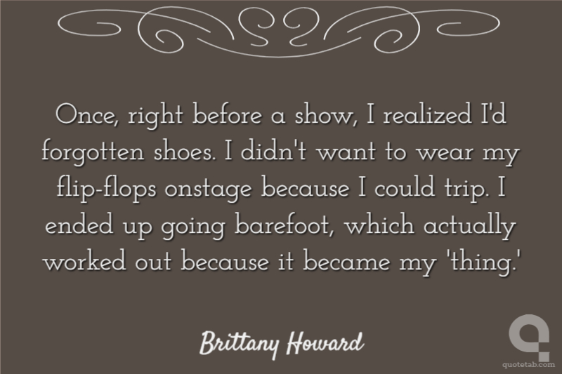 Once, right before a show, I realized I'd forgotten shoes. I didn't want to wear my flip-flops onstage because I could trip. I ended up going barefoot, which actually worked out because it became my 'thing.'