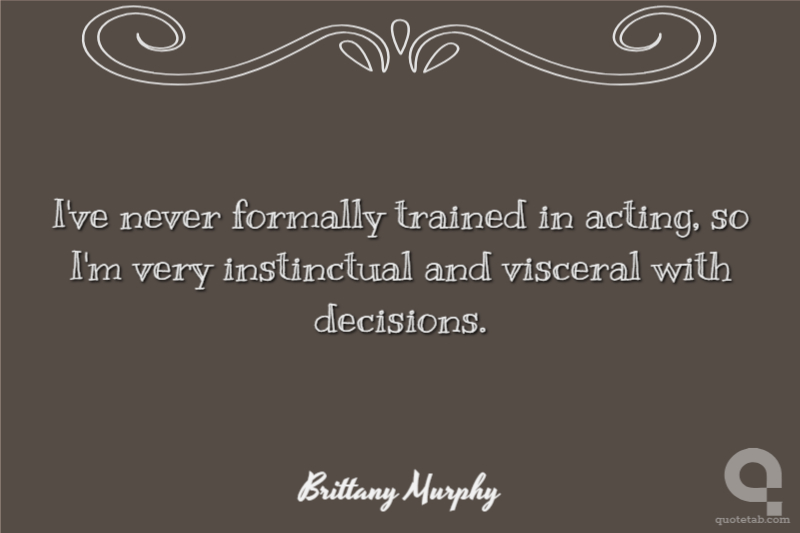 I've never formally trained in acting, so I'm very instinctual and visceral with decisions.