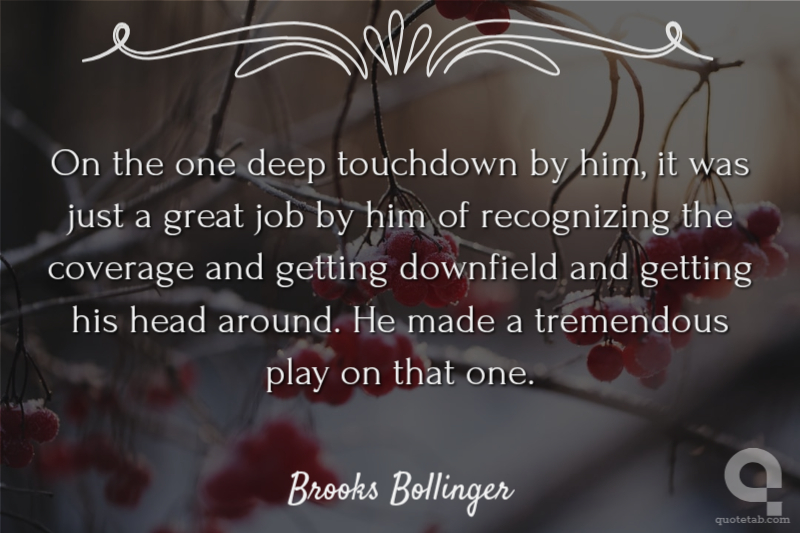 On the one deep touchdown by him, it was just a great job by him of recognizing the coverage and getting downfield and getting his head around. He made a tremendous play on that one.