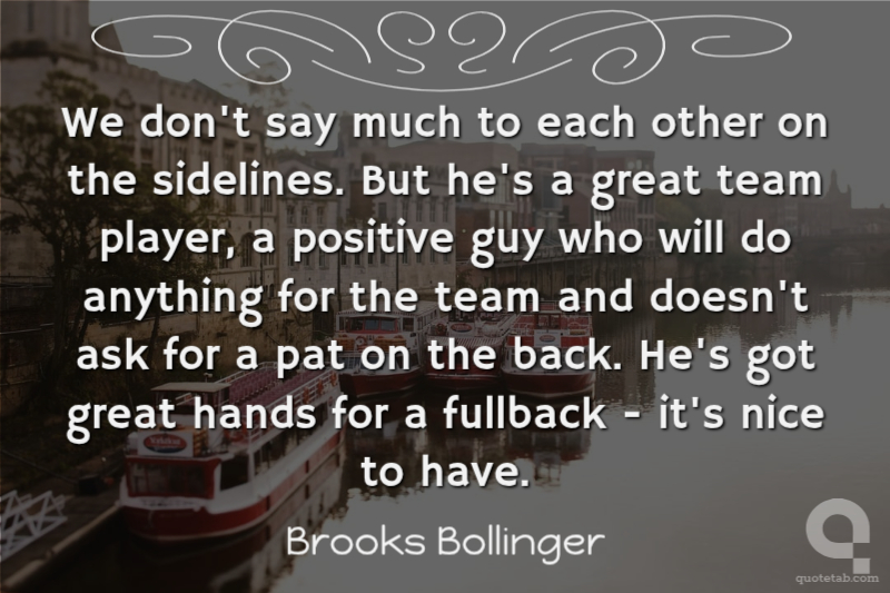 We don't say much to each other on the sidelines. But he's a great team player, a positive guy who will do anything for the team and doesn't ask for a pat on the back. He's got great hands for a fullback - it's nice to have.