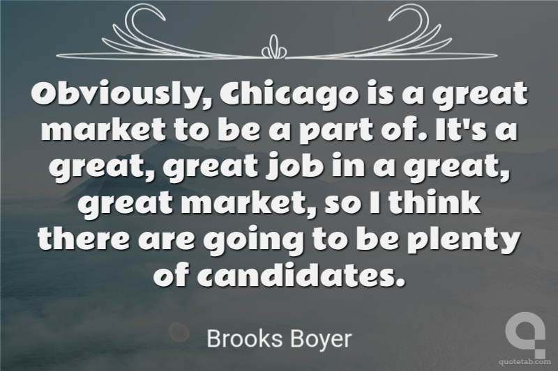 Obviously, Chicago is a great market to be a part of. It's a great, great job in a great, great market, so I think there are going to be plenty of candidates.