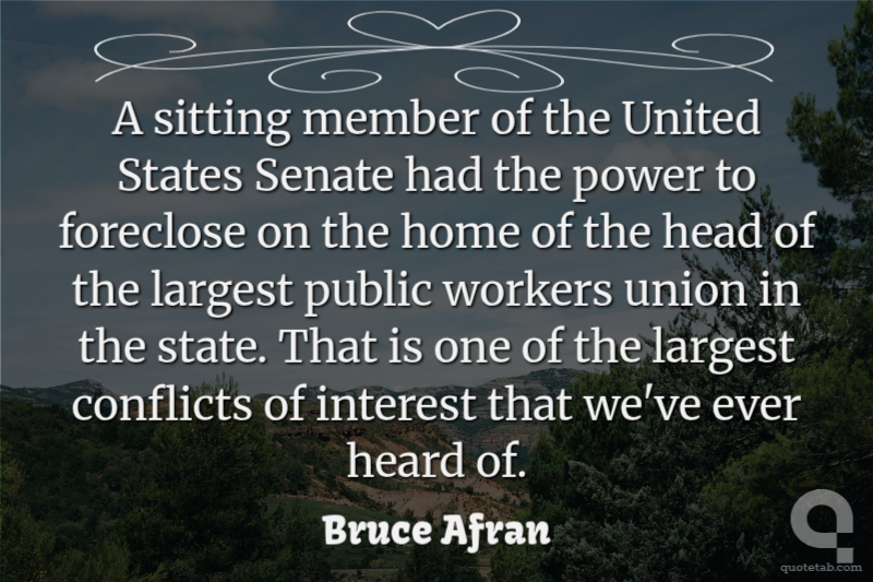 A sitting member of the United States Senate had the power to foreclose on the home of the head of the largest public workers union in the state. That is one of the largest conflicts of interest that we've ever heard of.