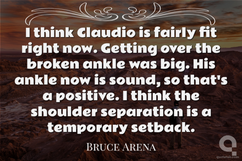 I think Claudio is fairly fit right now. Getting over the broken ankle was big. His ankle now is sound, so that's a positive. I think the shoulder separation is a temporary setback.