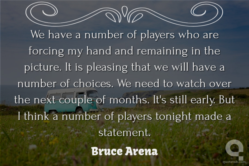 We have a number of players who are forcing my hand and remaining in the picture. It is pleasing that we will have a number of choices. We need to watch over the next couple of months. It's still early. But I think a number of players tonight made a statement.