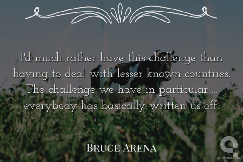 I'd much rather have this challenge than having to deal with lesser known countries. The challenge we have in particular ... everybody has basically written us off.