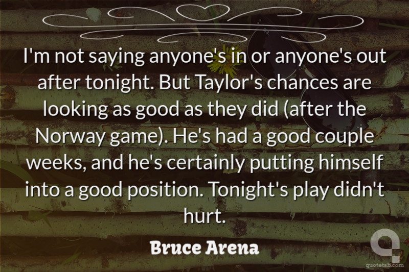 I'm not saying anyone's in or anyone's out after tonight. But Taylor's chances are looking as good as they did (after the Norway game). He's had a good couple weeks, and he's certainly putting himself into a good position. Tonight's play didn't hurt.