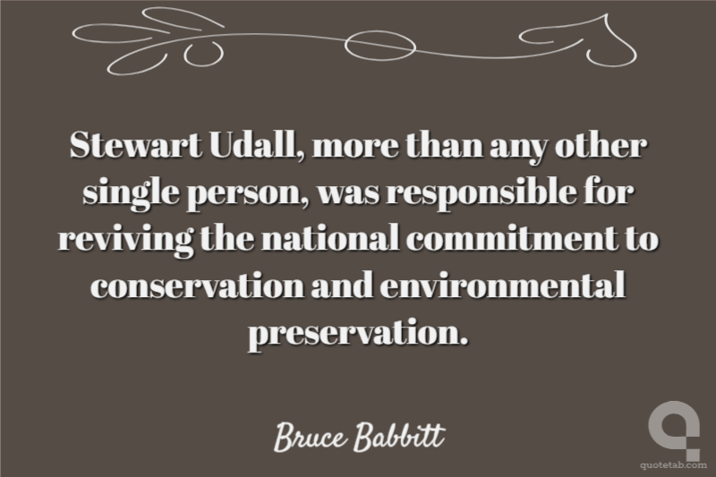 Stewart Udall, more than any other single person, was responsible for reviving the national commitment to conservation and environmental preservation.
