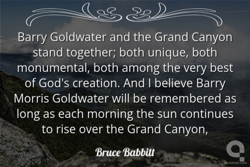 Barry Goldwater and the Grand Canyon stand together; both unique, both monumental, both among the very best of God's creation. And I believe Barry Morris Goldwater will be remembered as long as each morning the sun continues to rise over the Grand Canyon,