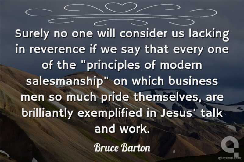 Surely no one will consider us lacking in reverence if we say that every one of the "principles of modern salesmanship" on which business men so much pride themselves, are brilliantly exemplified in Jesus' talk and work.