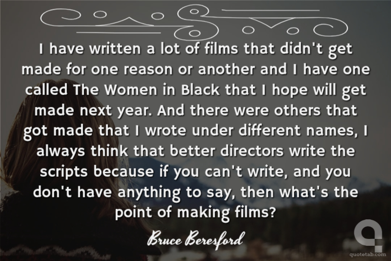 I have written a lot of films that didn't get made for one reason or another and I have one called The Women in Black that I hope will get made next year. And there were others that got made that I wrote under different names, I always think that better directors write the scripts because if you can't write, and you don't have anything to say, then what's the point of making films?