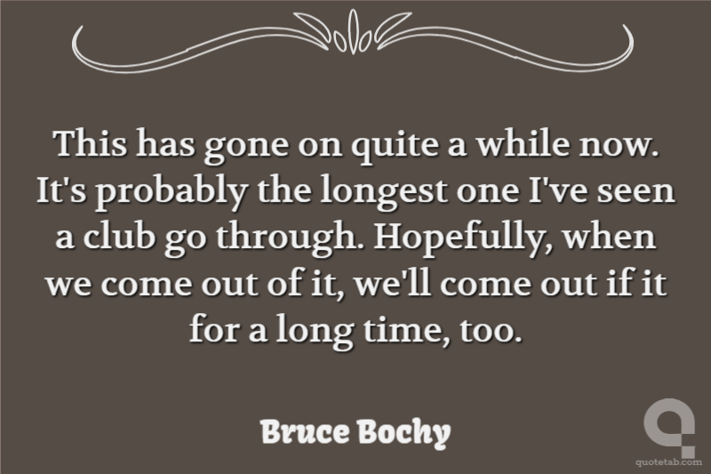 This has gone on quite a while now. It's probably the longest one I've seen a club go through. Hopefully, when we come out of it, we'll come out if it for a long time, too.