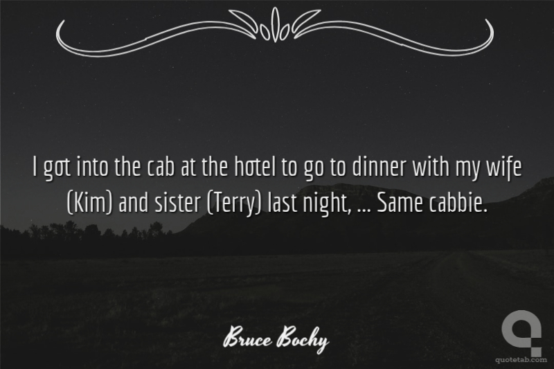 I got into the cab at the hotel to go to dinner with my wife (Kim) and sister (Terry) last night, ... Same cabbie.